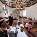 Fenyédi Fanni és Lakatos Réka, idén konfirmált székelykeresztúri fiatalok népdalokkal, László Attila kántor közreműködésével pedig daltutajos énekekkel ajándékozták meg a konferencia résztvevőit. Csáki Levente esperes Gagy gyönyörű, új zászlóját szentelte fel.