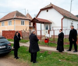 A püspöki vizitáció tagjait Balog Elemér, Vámosgálfalva polgármestere is fogadta, aki örömmel számolt be a község látványos fejlődését szolgáló infrastrukturális beruházásokról, és a jövőbeli tervekről, többek között a szőkefalvi Petrichevich-kastély felújításáról is.